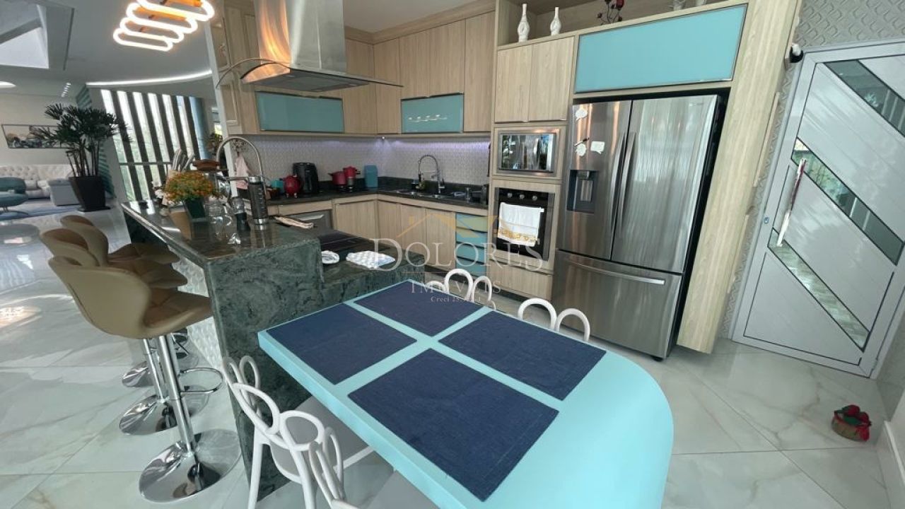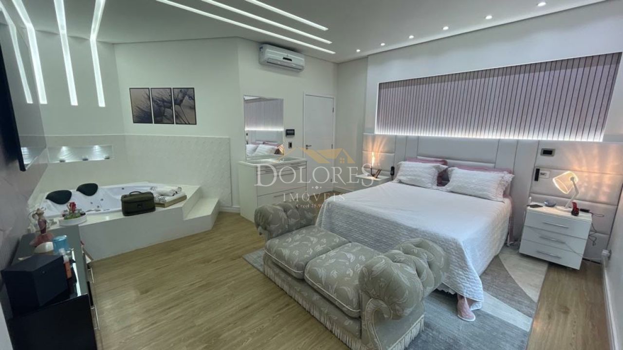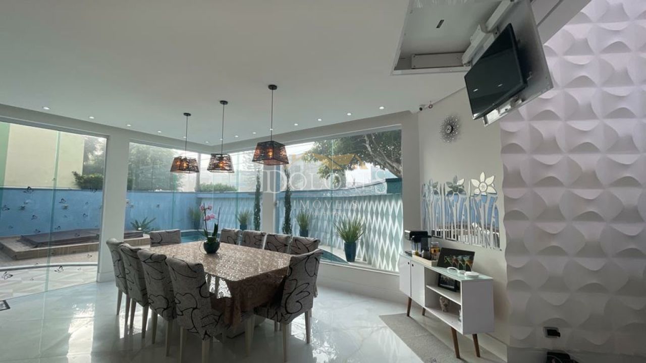 Ref: 3175 - Aruã - Imponente sobrado alto padrão, porteira fechada. Conta com 5 suítes sendo a máster com closet e hidro, 2 delas no térreo, sala de TV integrada com a cozinha e sala de jantar, lavabo. Ampla e charmosa área de serviço. Duas despensas. Linda escada dupla com claraboia. Sala de cinema, ateliê, escritório. Área gourmet com cozinha completa, churrasqueira, forno e fogão a lenha. Área externa para lareira em cima da área gourmet. Jacuzzi para 12 pessoas. Linda piscina iluminada com prainha e cascata. Acabamento fino. Destaque para a iluminação de toda a casa. Agende sua visita!